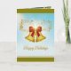 "Fira säsongen med detta eleganta julkort som visar ett strålande par av gyllene klockor. Deras skimrande finish och graciösa detaljer inger tidlös julglädje, vilket gör detta kort till ett perfekt sätt att dela festlig glädje med nära och kära."