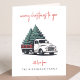 En festlig julkort på 5x7 med det glada hälsningsfrasen "Merry Christmas to you" i modern, handskriven röd typsnitt kombinerat med en vintageinspirerad grafik föreställande en julgranstransport. Designad på en ren vit bakgrund, denna stilrena retro-kort kombinerar nostalgisk charm med en modern, minimalistisk layout. Personifiera "med kärlek från"-delen och under med ditt familjenamn i kompletterande typsnitt för en varm, anpassad touch. Perfekt för att dela kärlek och julhälsningar, detta icke-fotografiska, roliga och klassiska design tillför personlighet till säsongen samtidigt som den sprider festlig glädje. En tidlös juldesign som passar lika bra för familjer, individer och par.