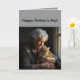 En kvinna kramar kärleksfullt sin katt på detta söta Morsdagskort.