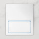 Detta vikta namn-placeringskort visas i grundläggande vitt med en klassisk ram i Carolina Blue-färg.