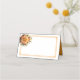 Detta vikta namnplatskort visas i grundläggande vitt med en vacker blomsterkvast i orange färger.