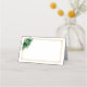 Detta vikta namnplatskort visas i grundläggande vitt med en vacker blomsterbukett i smaragdgröna och gyllene nyanser.