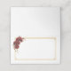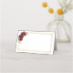 Detta vikta namnplatskort visas i grundläggande vitt med en vacker blomsterkvast i färger av djuprött och guldbelysningar.