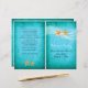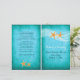 Starfish pair och Veil turquise tropical Destinations bröllopsceremoni och party-vikta program med ett par orange stjärnfisk på en vit vågad slöja på turkospblått och teal grunge nedfläckad bakgrund. Denna moderna utformning av akvariet bröllop ingår i en samling av bröllop eller bröllop och är en perfekt av en fullständig anpassade för en destinationsstrand i bröllop. Du måste lägga den i mitten. Välj endast den här typen av pappert värde när det viks väl.