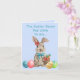Kortet i Påsk har en Påskhare kanin som bär en blå bog med en blomma vid örat. Han håller en Påsk-basket med blommor och morötter i den och är omgiven av färgstarka, färgade Påskägg. Texten lyder "Påskharn har kom att säga..". Inuti kortet finns en rustik träskylt som hänger: "Hoppas du har en underbar Påsk Day!" En annan bunny som sitter i grund med ett Påskägg och basket bredvid sig fylls med mer färgstarka ägg. Bakgrunden är en blått robinägg på hela kortet. Det finns till och med en liten kanin på baksidan av kortet också!
