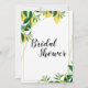 Den viktigaste klämningen av citron av typen inbjudningskort för möhippan Snyggt, temat inbjudningskort för möhippan, med citron- och bladarrangemang och guld geometrisk linjekonst. Denna citrusmosa inbjudningskort för möhippan är ett sött sätt för gäster från inbjudan att ta sig till en kommande möhippa.
