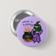 Cute Halloween-fantasi-design av en ny häxa som studerar hennes trollformel bok. Hon har en häxhatt och rån med symboler. Förutom henne är magiska kauldron. Texten säger ... Jag vill träna.