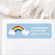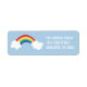 Dessa vita regnbågshämmande returetiketter tillför perfekten som avslutar beröring till regnbågen födelsedagsfest inbjudan eller tackkort. Med en illustrerad regnbåge åtföljd av två fluffiga moln på en ljusblå bakgrund. Köp hela samordningsinsamlingen för alla era behov av regnbåge i party.