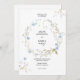 Inbjudan dina kära till en dag av kärlek och firande med den här fantastiska bröllopsinbjudan, försedd med delikata blå blommigtar och mjuk grön. Den vita andemeningen skapar en atmosfär av romantik och tidlös elegans, perfekt för ett vår eller trädgårdskrävande bröllop. Låt naturens skönhet sätta tonen för ert oförglömliga tillfälle.