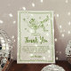 Med det här födelsedagsfesten vill jag tacka dig för i stil, med ett vismskt handritat grönt ram och en lekfull teckning av en kvinna som sitter i ett martinistiskt glas, med en cowgirl-hatt och -stövlar. Uttrycket "Tack" visas elegant i ett handskript för grönt, med utrymme nedan för ditt personlig-meddelande och namn. Den här unika grönten och tack för snyggten är den perfekt som avslutar om du vill ha en födelsedag för en oförglömlig vuxen.