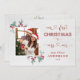 Charming-design med modern och unik "våra första julklappar som Mrs.and Mr.", arrangemang vattenfärgad jul (gräs, hullbär, mistletoe, eukalyptus löv), ditt foto med vit ram, med en papper bakgrund med vattenfärg. Använda Anpassa verktyg om du vill lägga till din information och ditt foto.