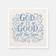 Den här designen har den upplyftande frasen "Gud är Bra hela tiden" som elegant återges i en flytande typografi. Omkring texten finns viskartade doppar som blått och lila vattenfärger ger liv. De mjuka skuggorna av blått och lila smälter harmoniskt och skapar en lugnande bakgrund som reflekterar och freden i inbjudan.