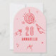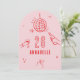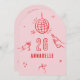 Rosa och rött hand plockade-ätbara ålderskycklingar med cocktail disco boll boquette party inbjudan.