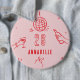 Rosa och rött hand plockade-redigerbar födelsedagskyckling, cocktail disco boll-bucketfest gynnar dekorknappdesign.