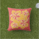 Lägg till en tropisk känsla, till ditt utomhusboende, med den här söt nedklädda röda kudden med gult av roligt och rött poka-punkthibiscus blommor. Anpassa och lägg till text för att göra detta till din egen.