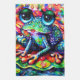 Viktigt intressionistisk Blommigt Frog Grönt Blue Kökshandduk