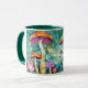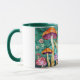 En viskös skog brottas med vild svamp av färgad, vissa med polka dots. Swirling mönster och ömtåliga blommor fyller bakgrunden och ökar den förtjusande atmosfären.