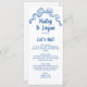 Det här moderna menykortet i bröllop har en handritad bockbild och en handskriven typografi i perfektens blå nyans. Det är handgjort och roligt, men fortfarande romantiskt och elegant! Se samlingen för fler objekt.