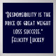 "Ansvaret är prisa för underbara viktminskningsframgångar." ~ Felicity Luckey.