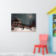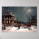 Denna vintage julbild visar en snöljusscen när gäster kommer med häst och sleigh till jul Party vid den ljusbelysta Victorian Mansion skapar en underbar helgdag poster.