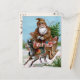 Vintage viktoriansk brunt robbad tomte jul postkort. Högkvalitativ, återställd vintagebild.