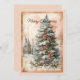 En viktoriansk kyrka och Julgran i muterad grönt, rosa och brunt färg. Framtext: God jul i svart. Bakversen önskar dig allt som Julhelgen kan föra med sig och under hela nyåret