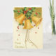 Vintage/Viktoriskt julhälsningskort. Tre gyllene klockor dekorerade med holly. En Lycklig-jul!