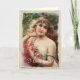 Viktoriansk kvinna med rosa rosor välkomstkort kort