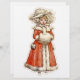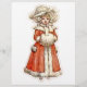 En papper docka som segrare utklädd i en vacker röd vinter jackar, hatt och vit päls handmuff. En charmig vintage bild.