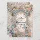 En vacker akvarell viktoriansk bröllopsinbjudan med pastellrosa och blå blommor och band.