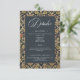Låt dig förtrollas av det förflutna med vår vintage blommande bröllopsdetalj inneslutningskort. Inspirerad av William Morris ikoniska design, har denna design en hypnotisk blandning av vintage nyanser - dystra svarta, dämpade röda, mjuka mellanbruna, guld och krämfärg. De invecklade blommiga mönstren, som påminner om Art Nouveau-eran, utstrålar en touch av mörker och ger en mystisk charm till er speciella dag. Det kol svarta textområdet, prytt med eleganta vintage-typsnitt, ger en slående kontrast mot den rika tapetbakgrunden. Denna tidlösa design fångar essensen av klassisk romantik, vilket gör den till det perfekta valet för par som söker en verkligt unik och oförglömlig inbjudan.