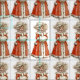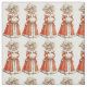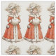 En papprare doll segrande flicka utklädd i en vacker röd vinter jackar, hatt och vit päls handmuff. En charmig vintage bild.