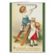 Vintage/Viktoriskt julhälsningskort. Underbara barn målar ett julmeddelande. God jul! Må jultid vara en fullt av glädje, och tomten ger dig en skatt!