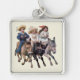 Viktorianska barn och hästar fyrkantig silverfärgad nyckelring