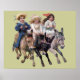 Viktorianska barn som rider sina ponnyer, från ett antika barns bok.