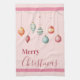Det här söt kökshanddumet har flerfärgade Viktoriska julprydnadsföremål som hänger ner från ett faux grossgrain-band överst. De är olika blått, gult och rosa. Typografi läser God jul vid grund i handduken. Ett annat grosskornsband är vid grund för att balansera utseendet. En sådan söt handduk till ditt kök under helgdagarna. Detta skulle också innebära en underbar gåva till vänner, familj och medarbetare. Det finns en annan handduk som är mycket lik i butiken, men prydnadsämnena är lite annorlunda och hänger annorlunda, så det blir en fin låda.