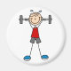 En stick figur-lyftvikt visas på detta fitness-tema stick figur-magnet.