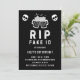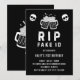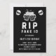 Äntligen lagligt! Fira denna stora milstolpe med vår roliga "R.I.P. Fake ID" 21-års inbjudan. Denna kantiga och roliga design har ett par klickande ölmuggar och två dödskallar, som perfekt fångar känslan av en högljudd fest. Den slitna, grungiga typografin bidrar till den rebelliska, festliga känslan. Denna 21-års inbjudan är ett perfekt sätt att samla vänner för en kväll med laglig drinkning och trevliga tillfällen. R.I.P. fake ID skämtet är direkt igenkännligt och kommer garanterat att ge en skratt från varje gäst.
