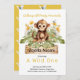 Förvandla din lilla födelsedag till ett oförglömligt safari äventyr med denna lekfulla Vild för första födelsedag En djungelinbjudan till djur! Utformningen har en nyfiken baby-apa, djärv tropisk grej, en glad gult och vita blommigtar. Den här Vilden Ett-designen är perfekt för ett djungeltemerat party. Roligtens text och livliga vibe satte scenen för en dag fylld med djurspel, djungelsnacks och vildens minnen. Anpassa dina party-uppgifter och inbjudan dina gäster att gå med firande!