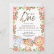 Vild 1 Djurens Rosa Blommor födelsedag Inbjudningar
