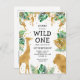 Vild 1 Jungle Safari 1:a födelsedag Guld Grönt Inbjudan Vykort