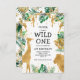 Vild 1 Jungle Safari Guld Grönt 1:a födelsedagen Inbjudningar