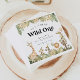 Safari Animals första födelsedag pappra blöjor som har roligt-animalgrafik, en svart, grönt och beige färg och ett modernt typsnitt. Snyggtens utformning är perfekt för en pojkes vild ett temat födelsedagsfest. Pair med vad som helst i OSCAR-samlingen för att få en sammanhållen blick.