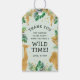 Dessa "vild 1"-djungelsafari, som den första födelsedagsfesten förespråkar, har guld faux-folie (giraffe, lejona och apa), djungelblad för guld och grönt och en sprinkling av guld konetti mot bakgrund av en pastellbakgrund på grönten. "Tack för att du kom till min party! Hoppas att du hade vild!" visas i svart text. Anpassa märkrna med namn på födelsedagspojken eller flickan.