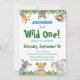 Vild 1 Safari Animals Boy First Birthday Invita Inbjudningar