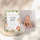 Visa födelsedagspojkens foto bredvid en söt födelsedag party inbjudan! Inbjudan visas till lämnat med en ram av grönt vattenfärgsvänner löv och safari djurvänner. Texten innehåller födelsedagspojtionens namn med "svänger en vild!" med din händelseinformation nedan. Kort på baksidan av en pastellgult färg med vit handdragen linjer och dockor. Klicka på "Anpassa" om du vill ändra ordalydelsen. Kontakta mig gärna om du har några frågor - jag är lycklig för att hjälpa till!