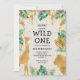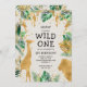 Vild 1 Safari Grönt Guld Ecru 1:a födelsedag Inbjudningar