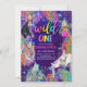 Vild 1 Safari Neon Rainbow Cheetah Birthday Inbjudningar