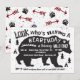 Toppen roligt Bho Bear födelsedagsinbjudan med stor svart björn, gräs träd, pilar och tonåringar med roligt typsnitt och en spritt bakgrund. Baksidan har avtryck från pil och klo. McBoos illustration av hand plockade