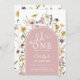 Vild 1 Wildblommor Rosa 1:a födelsedagen Inbjudningar